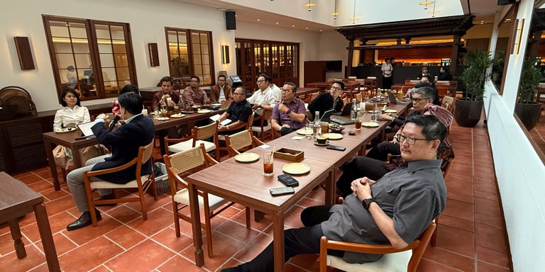 3 Oktober 2025 - FINI bersama Associate Member mengadakan Pertemuan di TAMU Restaurant, Jl. Adityawarman Jakarta selatan. FINI sekaligus mengundang Bapak Dony Setiady Senior Research Analyst Macquarie Securities Indonesia, covering commodity sector sebagai pembicara utama. Dalam diskusi ini beliau memaparkan analisis terkini terkait kondisi global nickel supply/demand. Pertemuan ini menjadi ruang bagi anggota untuk bertukar pandangan mengenai arah kebijakan dan dinamika industri, sekaligus memperkaya wawasan terhadap tantangan serta peluang yang akan dihadapi sektor nikel kedepan.
