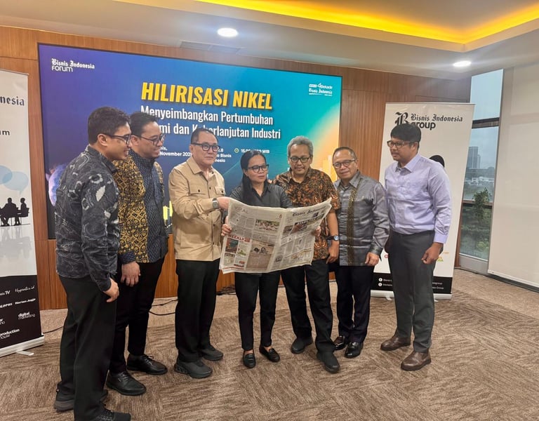 Jakarta, 20 November 2025 - Dalam forum yang diselenggarakan oleh Bisnis Indonesia, FINI menegaskan komitmennya untuk menjadi mitra strategis pemerintah dalam melanjutkan program hilirisasi industri nikel yang merupakan bagian dari program Asta Cita Presiden. Para narasumber menyampaikan bahwa rencana peningkatan kapasitas produksi di dalam negeri seyogyanya juga memperhatikan daya dukung lingkungan dan juga keseimbangan supply & demand secara global. Dalam kesempatan tersebut, FINI juga menyampaikan bahwa Pemerintah semakin memberikan dukungan melalui penetapan Peraturan Pemerintah Nomor 28 tahun 2025 yang bertujuan untuk mempercepat proses perizinan, memberikan jaminan kualitas layanan pemerintah melalui SLA, menjaga iklim investasi tetap kondusif dan berkontribusi bagi pencapaian target pertumbuhan ekonomi 8% yang dicanangkan oleh Presiden.