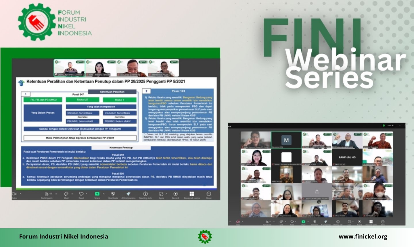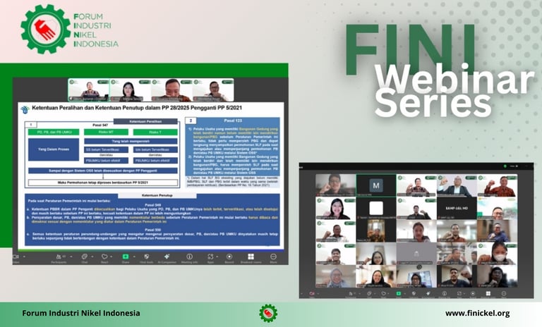 Jakarta, 23 Juli 2025 - FINI Webinar Series #2 terkait Penerapan PP 28/2025 di Sektor Pengolahan dan/atau Pemurnian Nikel serta Kawasan Industri.