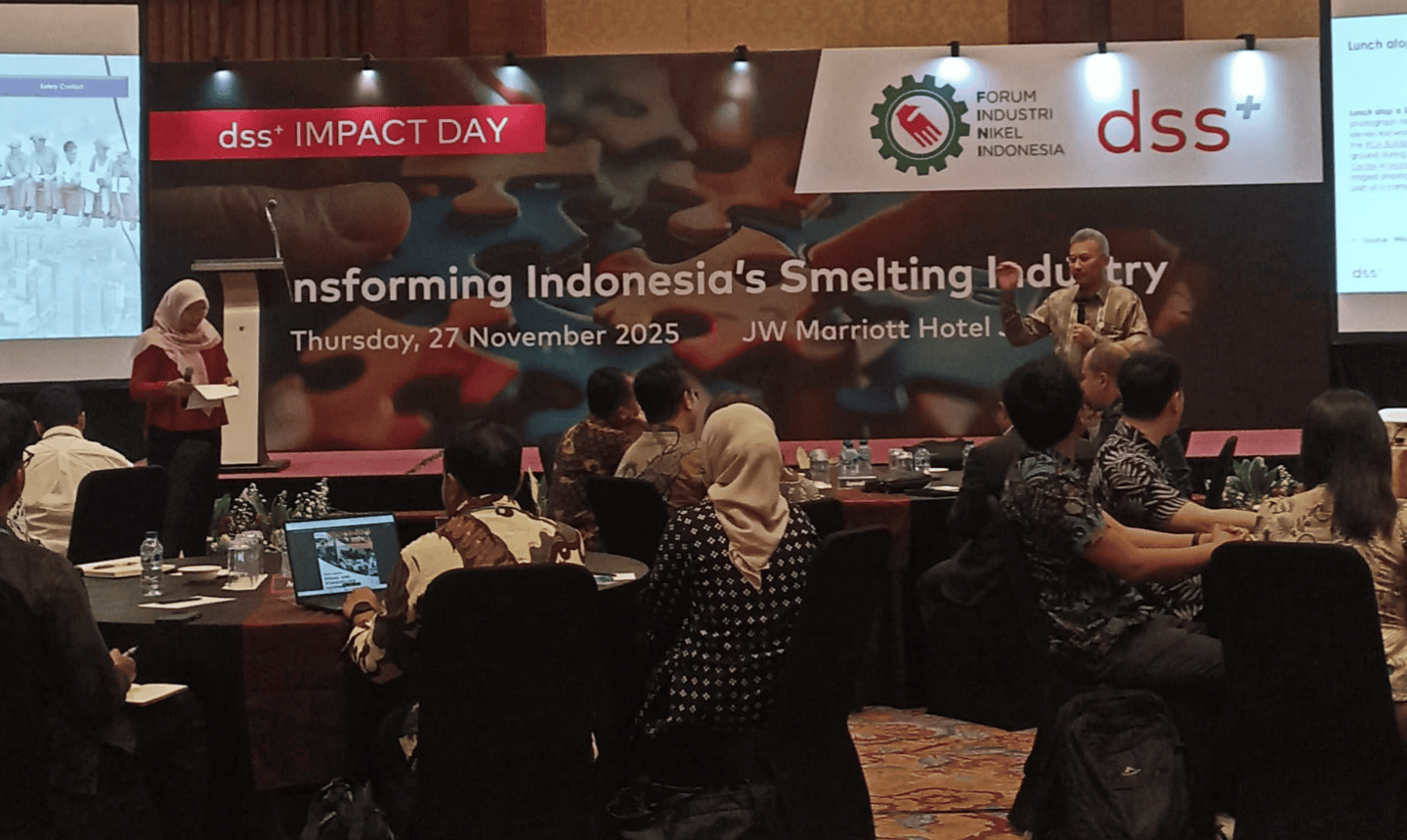 Jakarta, 27 November 2025 – FINI bersama dss+ mengadakan Event exclusive bagi para anggota FINI di Hotel JW Marriott. Acara ini bertujuan meningkatkan kesadaran terhadap keselamatan dan kesehatan kerja (Occupational Health & Safety) dalam kegiatan operasional smelter nikel di Indonesia. Acara ini merupakan tindak lanjut dari amanah Dirjen ILMATE yang sebelumnya disampaikan pada sesi coffee morning bersama FINI yaitu agar kinerja keselamatan smelter nikel dapat ditingkatkan. Dalam kegiatan ini Bapak Budiawansyah, Direktur sekaligus Chief Sustainability & Corporate Affairs Officer Vale Indonesia juga diundang untuk membagikan pengalaman profesionalnya mengenai penerapan standar keselamatan dan kesehatan kerja yang tinggi di sektor industri pengolahan nikel.